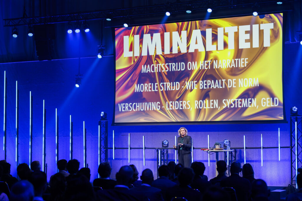 Na de break-outs luisterden we naar corporate antropoloog Jitske Kramer. We bevinden ons in een tussentijd van veranderingen, een liminale tijd. Jitske sprak over de menselijke kant van verandering, de liminale fases waarin organisaties vaak het meest kwetsbaar zijn, maar waarin ook de grootste kansen ontstaan.