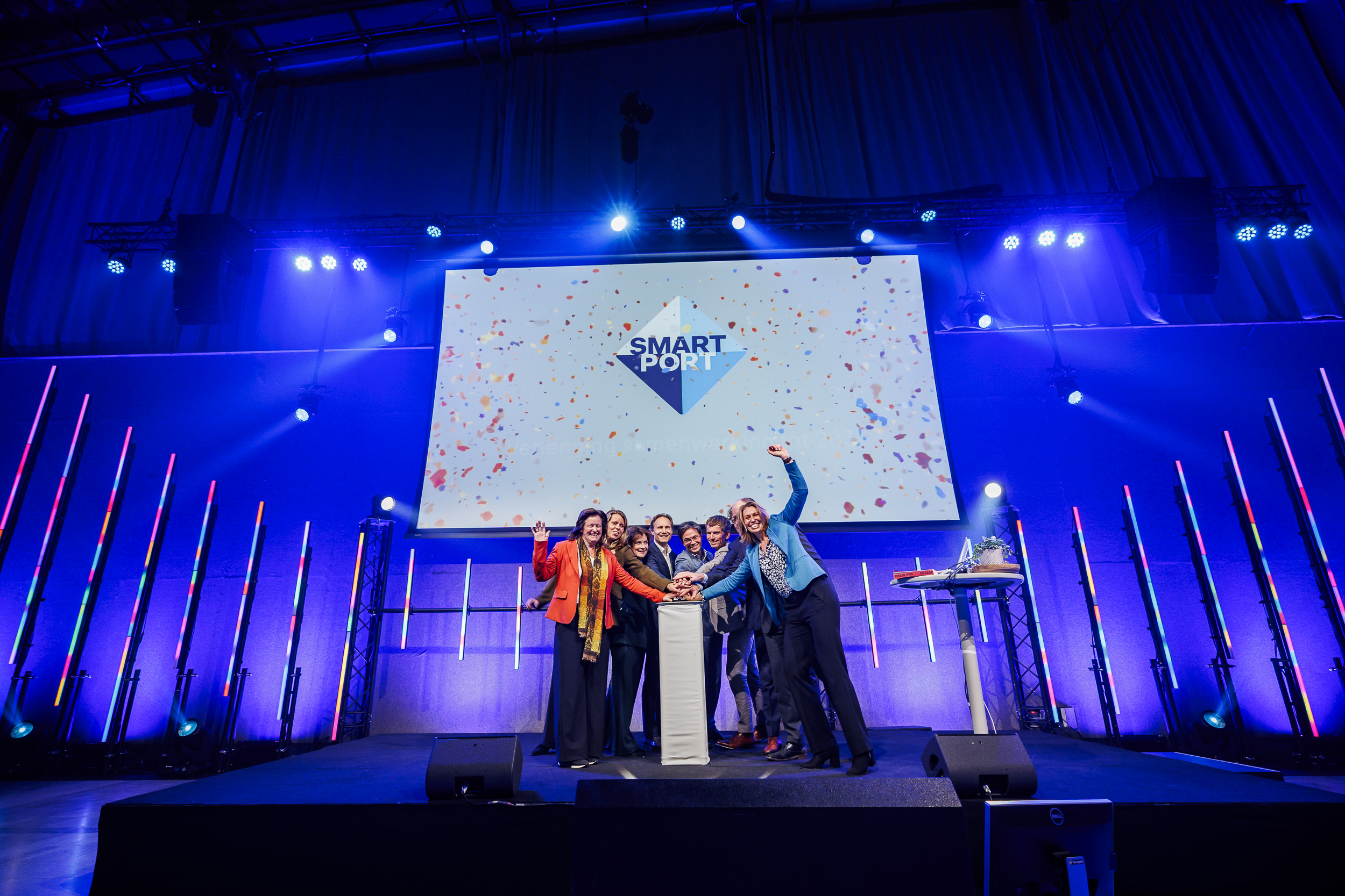 Tenslotte werd officieel bekendgemaakt dat het samenwerkingsverband SmartPort met vijf jaar wordt verlengd, tot 2031. Het nieuws werd feestelijk onthuld door de vertegenwoordigers uit het samenwerkingsverband, in het bijzijn van een zaal vol impactmakers, vooruitdenkers en beslissers uit het havenecosysteem.